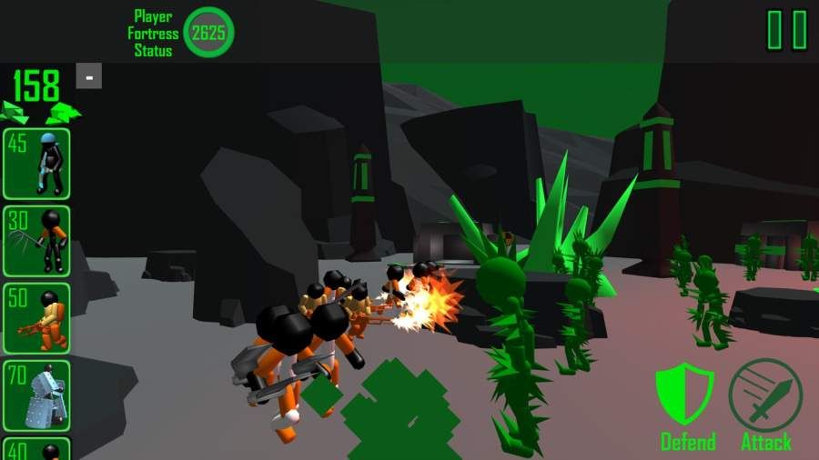 控制大量單位,升級并通過出色的勝利將它們排名,軍隊來擊敗敵人火柴人國王。