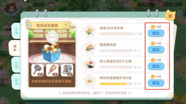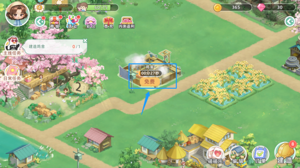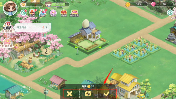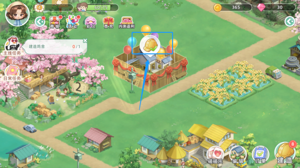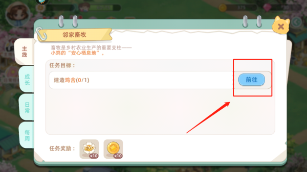 3、點(diǎn)擊主線任務(wù),完成用于獲得獎(jiǎng)勵(lì)幫助快速升級(jí),獲取金幣,如:建造雞舍
