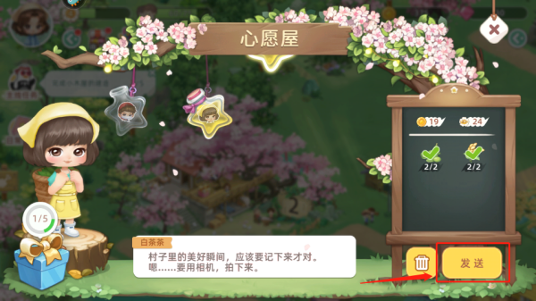 10、可以看到村民需要的東西,收集完成點(diǎn)擊發(fā)送,送至村名手中,獲取獎(jiǎng)勵(lì)